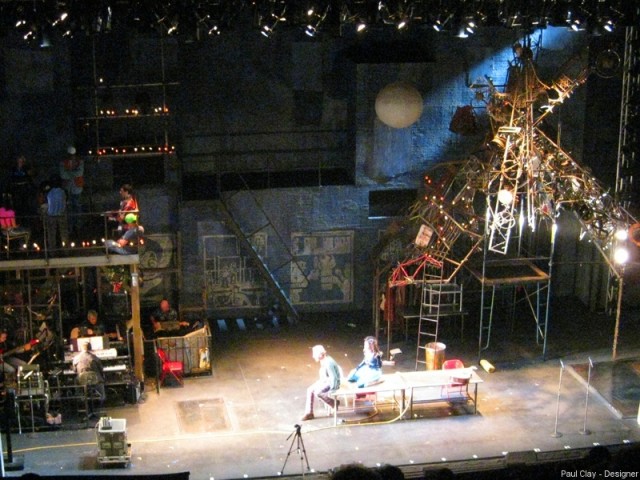 Paul Clay's Set Design, and Projections Design, for the Broadway Production of RENT, down stage table focus.