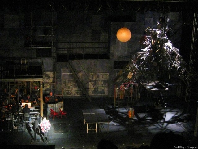 Paul Clay's Set Design, and Projections Design, for the Broadway Production of RENT, DSRC focus plus nighttime sculpture, from the Paul Clay Design website.